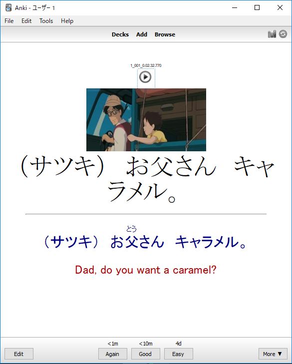 User submitted deck. Thank you! This the complete Tonari no Totoro deck consisting of 495 cards with audio, images, and English subtitles. Perfect for beginners! Thanks again! Enjoy!